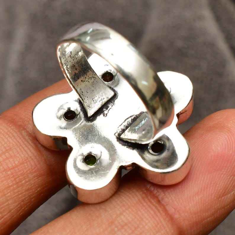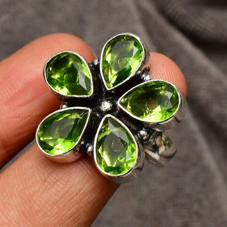 Handmade Peridot Flower Ring 925 Sterling Silver Birthstone Jewelry Natural Green Gemstone Womens Ring Gift