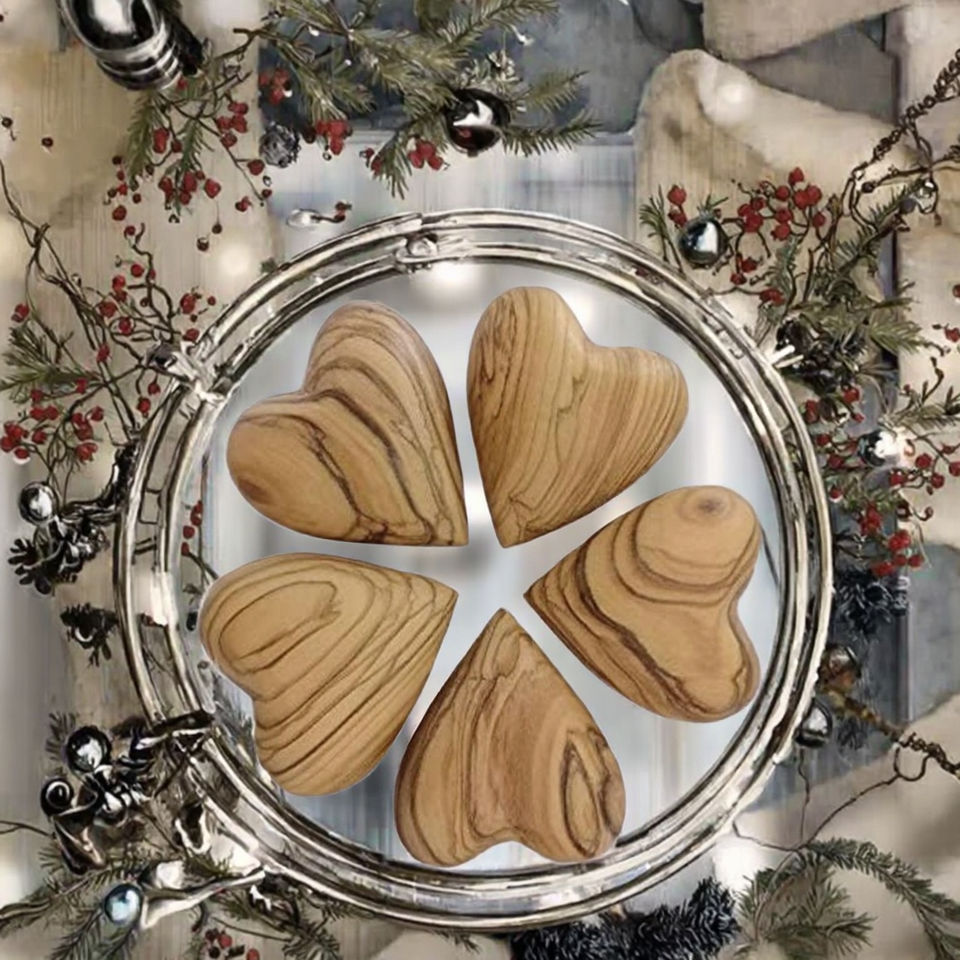 Handmade Personalized Eco-Friendly Olive Wood Love Heart Polished Gift for New Year