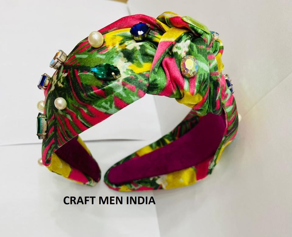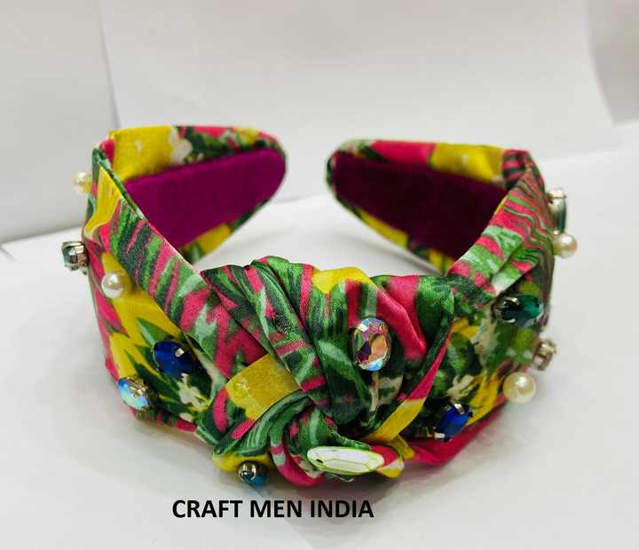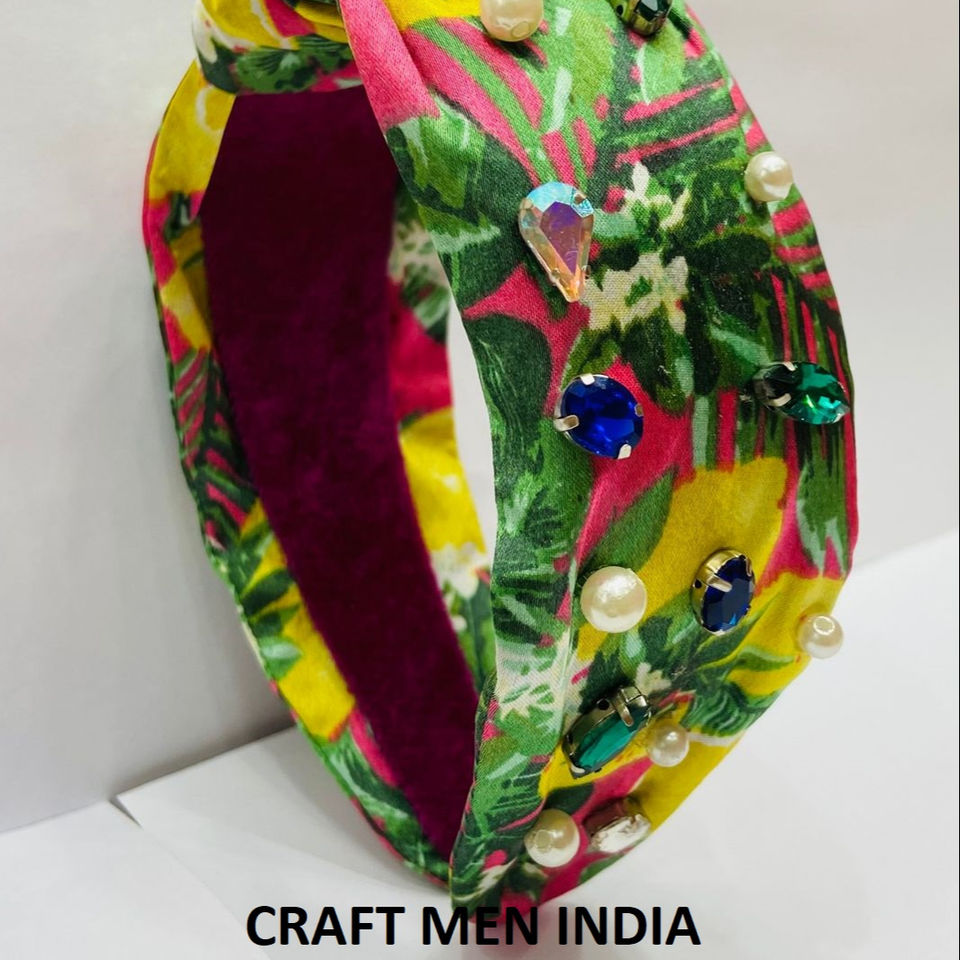 Handmade Personalized Hairbands Game Day Beaded Rhinestone Pearl Seed Beads Crystal Headbands with Silk Fabric for Sports Fans