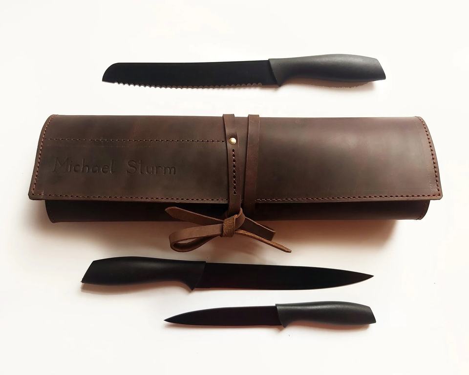 Handmade Personalized Knife Roll Leather Knife Case Dark Brown Chefs Bag Knife Chef Roll LKR-0052