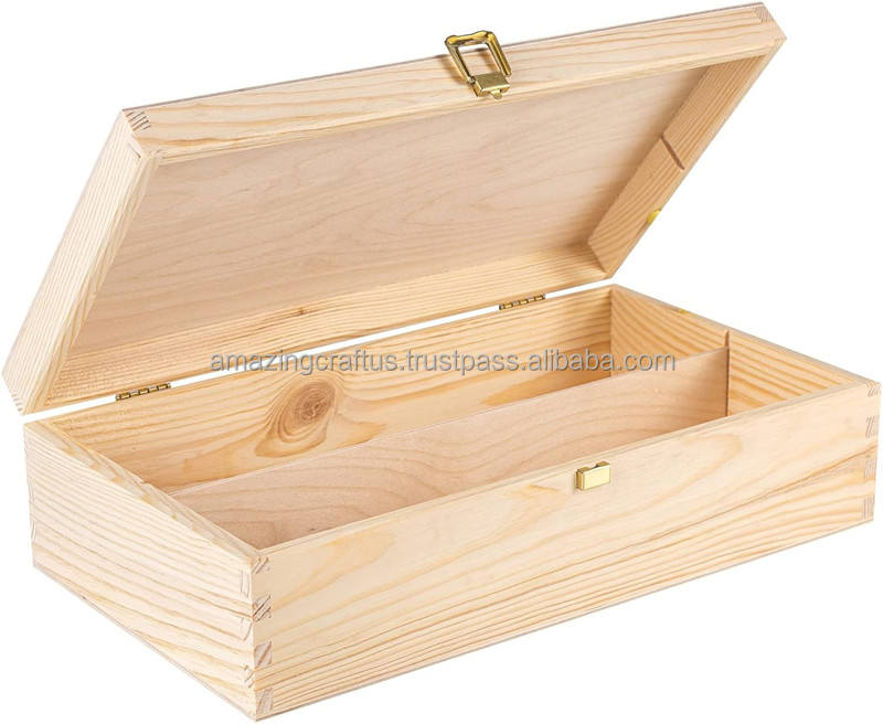 Handmade Pine Wood Wine Tea Bottle Box Two Bottles Tenoning Unpainted Smoothly Sanded Natural Plain Color OEM Size Wholesale