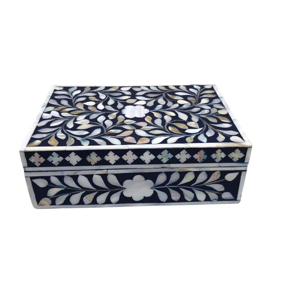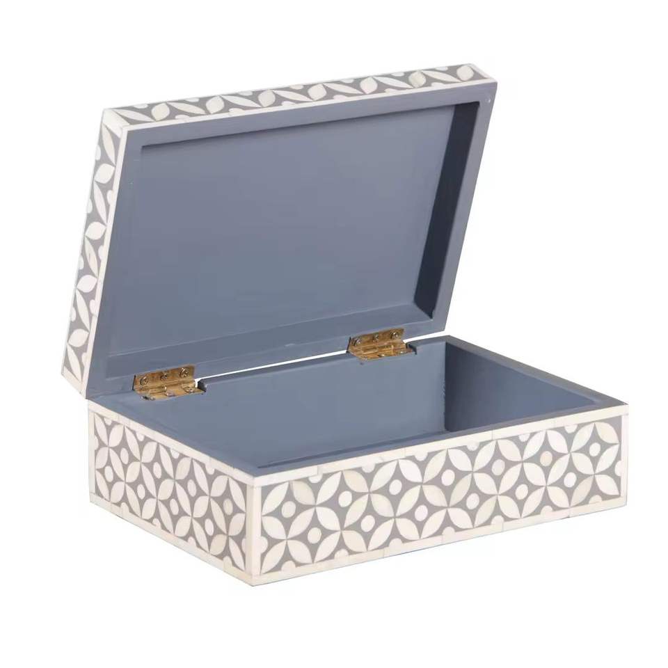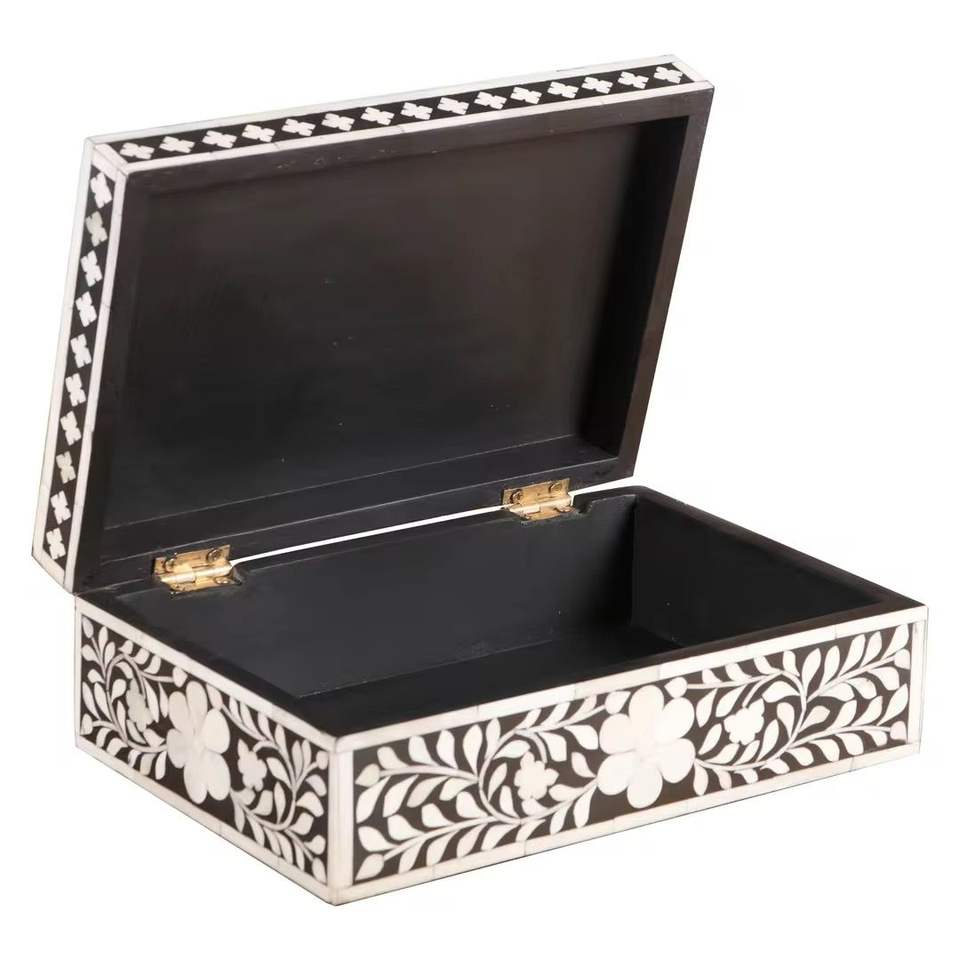 Handmade Pink Bone Inlay Petal Pattern Jewelry Box Rectangular Floral Keepsake Chest Luxury Decorative Storage Organizer Case