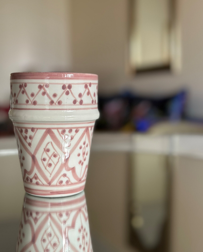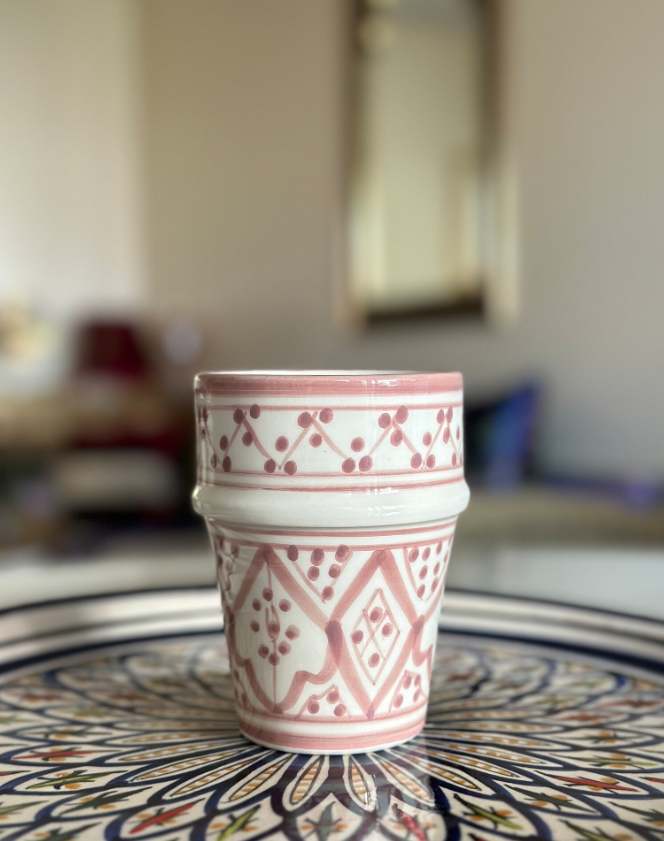 Handmade Pink Ceramic Glasses Ceramic & Enamel Mug Moroccan Hand-painted Small Glasses Customized OEM Available 10
