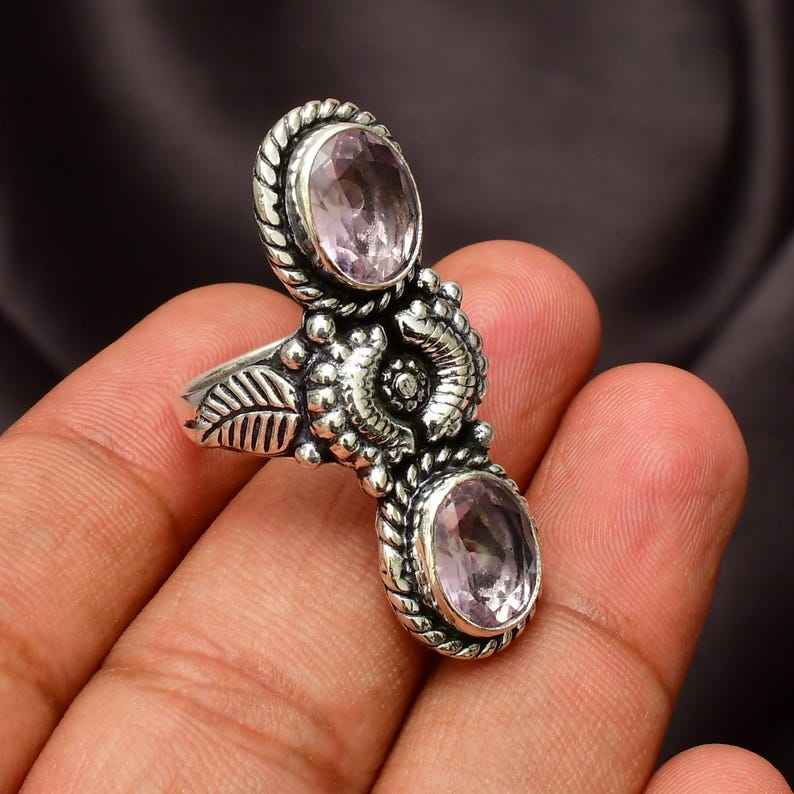 Handmade Pink Kunzite Ring 925 Sterling Silver Gemstone Jewelry Natural Pink Stone Womens Ring Birthstone Gift
