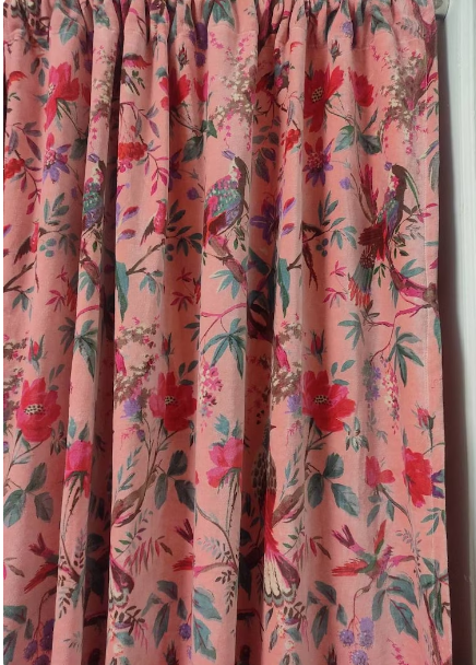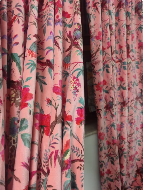 Handmade Pink Peach Bird Print Velvet Cotton Vintage Curtains Blackout Window Hanging for Home and Room Decoration Factory Price