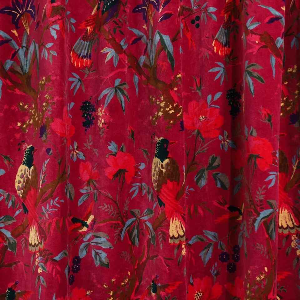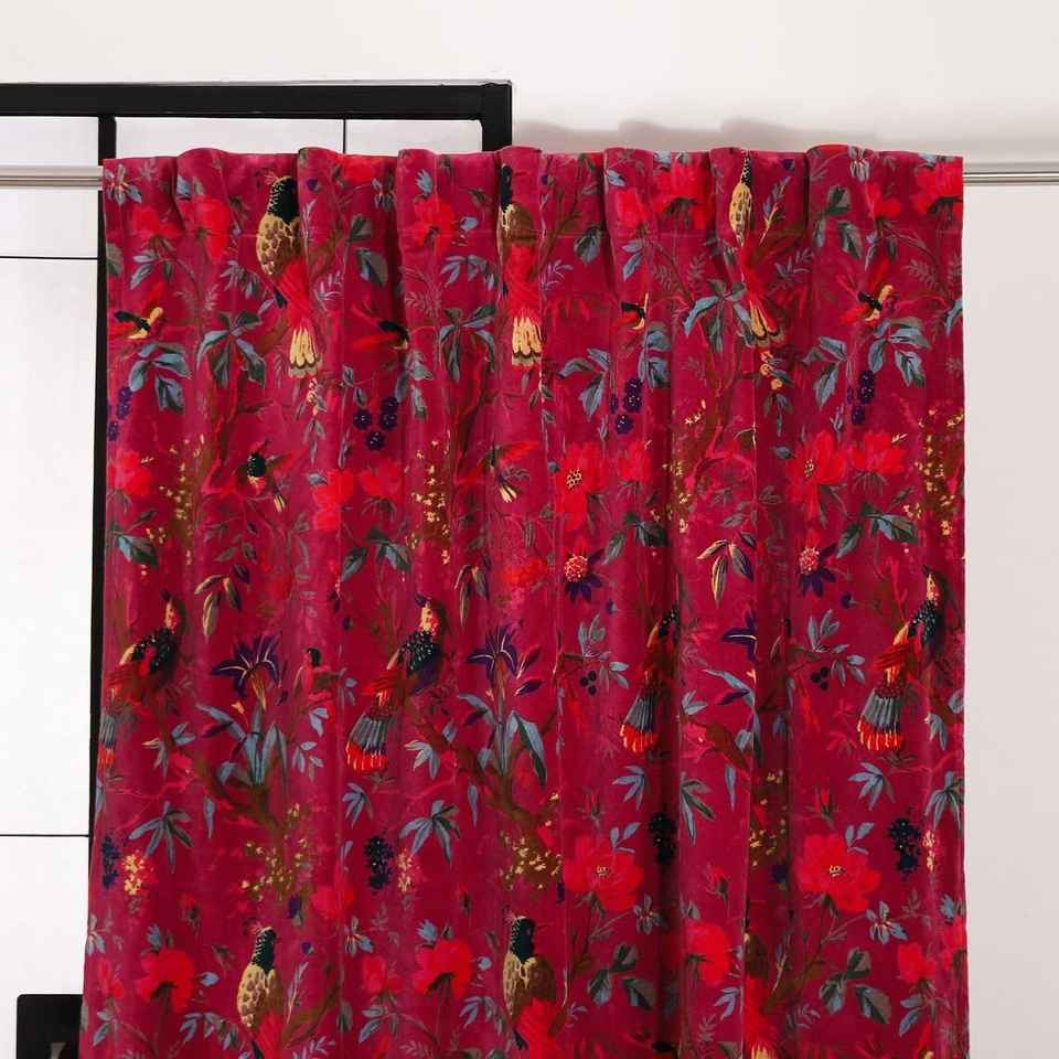 Handmade Pink Peach Bird Print Velvet Cotton Vintage Curtains Blackout Window Hanging for Home Room Decor Factory Low Cost