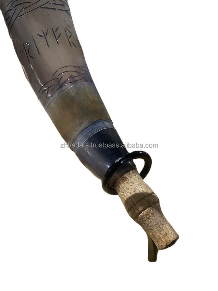 Handmade Polished Buffalo Sounding Horn with Brass Ring Viking Style Waterproof for Battle Reenactment and Decor