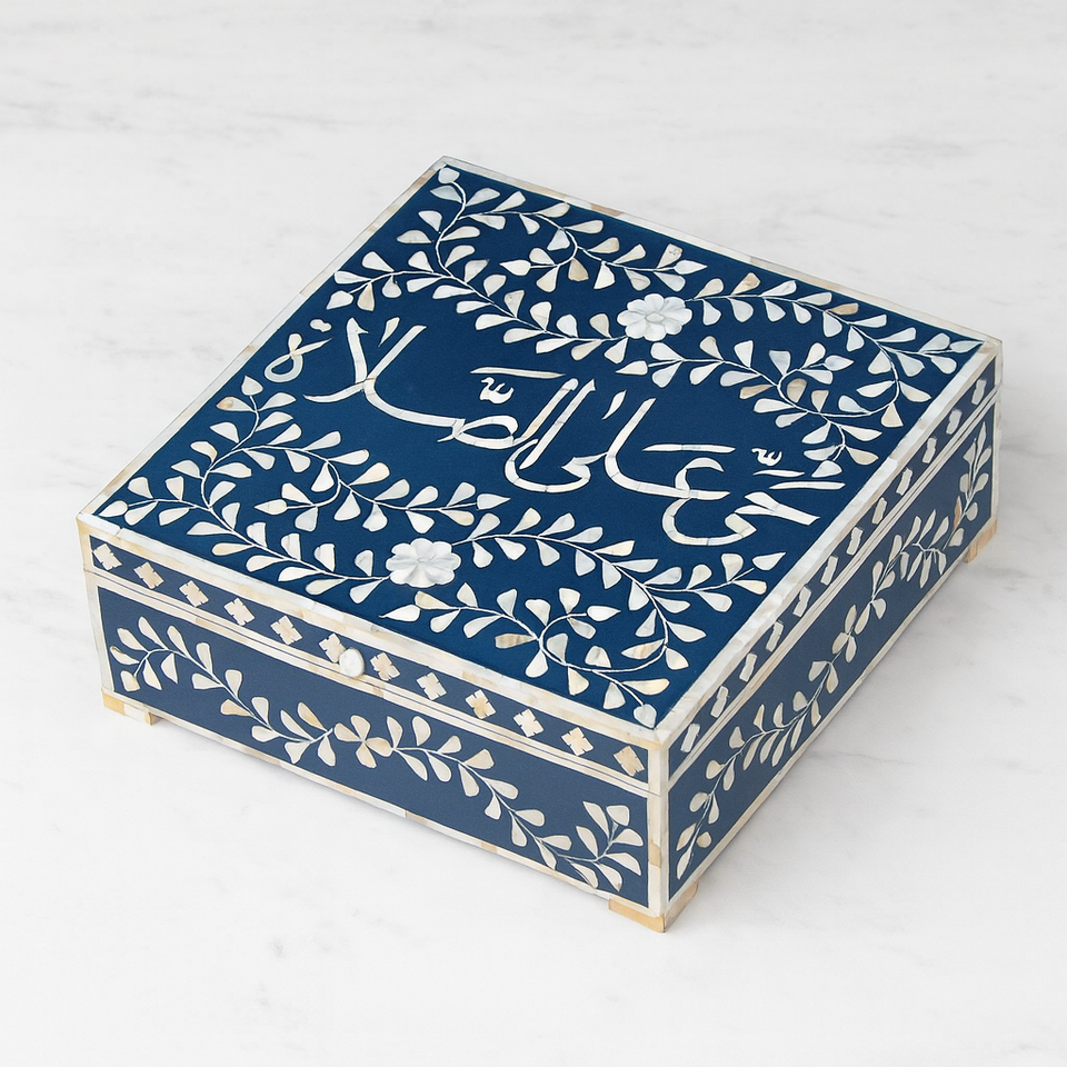 Handmade Polished Eco-Friendly Blue Bone Inlay Wooden Decorative Jewelry Storage Organizer Luxury Gift Box for Home Decor