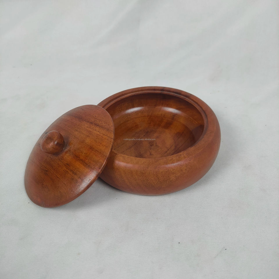 Handmade Polished Eco-Friendly European Wooden Serving Bowl with Lid for Rice Soup Pasta & Cereal-Party Centerpiece From India