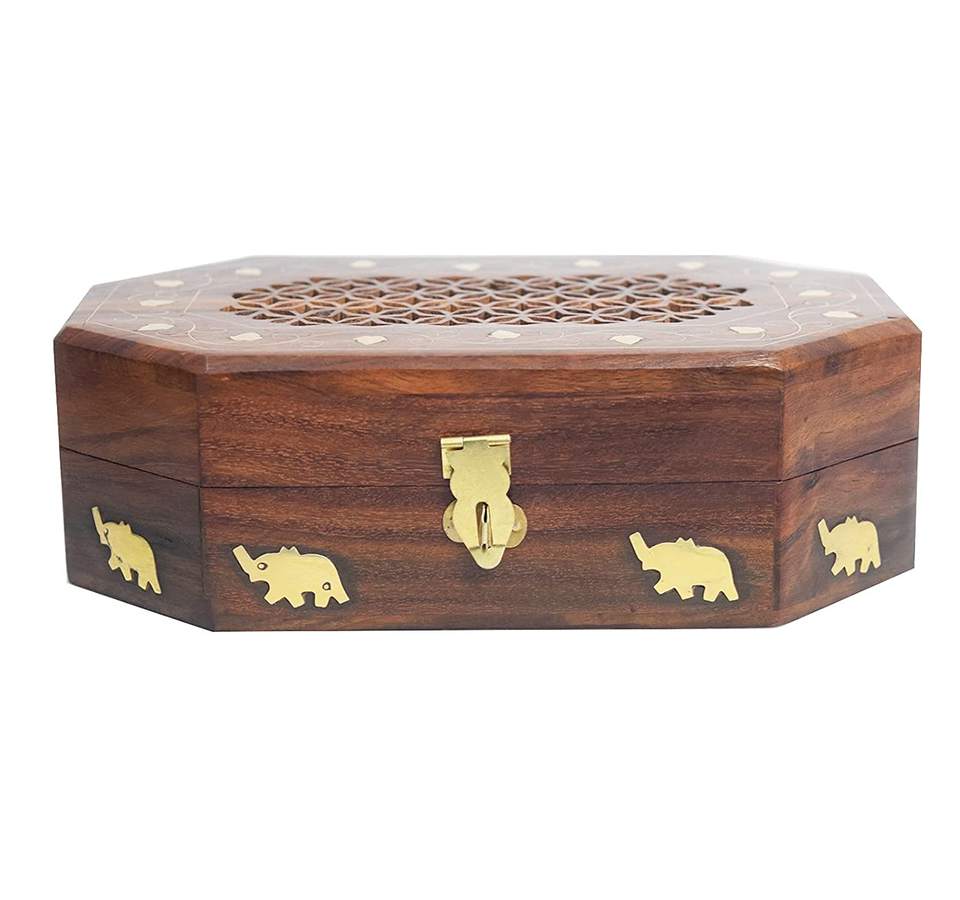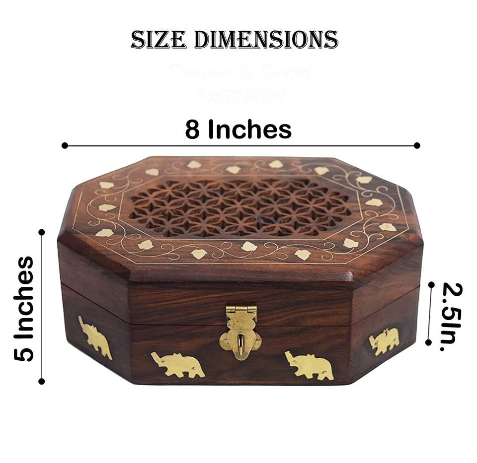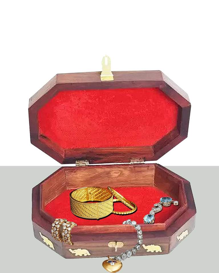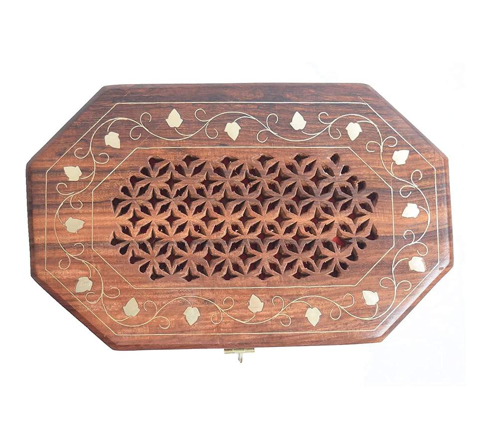 Handmade Polished Wooden Jewelry Box with Embossing Printing Customized Shape Intricate Carvings From Uttarakhand