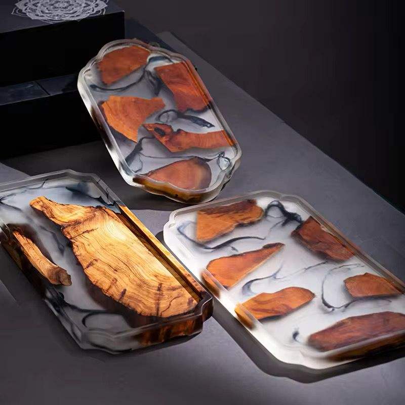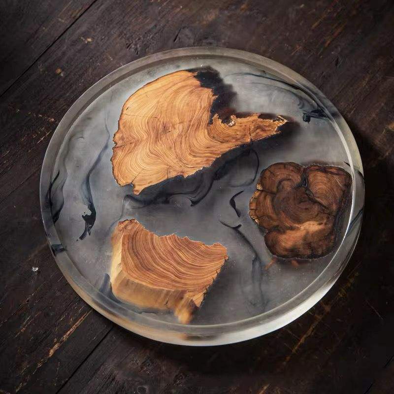 Handmade Polished Wooden Serving Tray with Folk Art Style New Home Celebration Food & Drink Tray Family Gift
