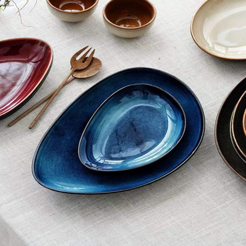 Handmade Porcelain Dinner Plate Triangle Deep Cold Dish Fruit Dessert Salad Sushi Pasta Steak Serving Tray Restaurant Tableware