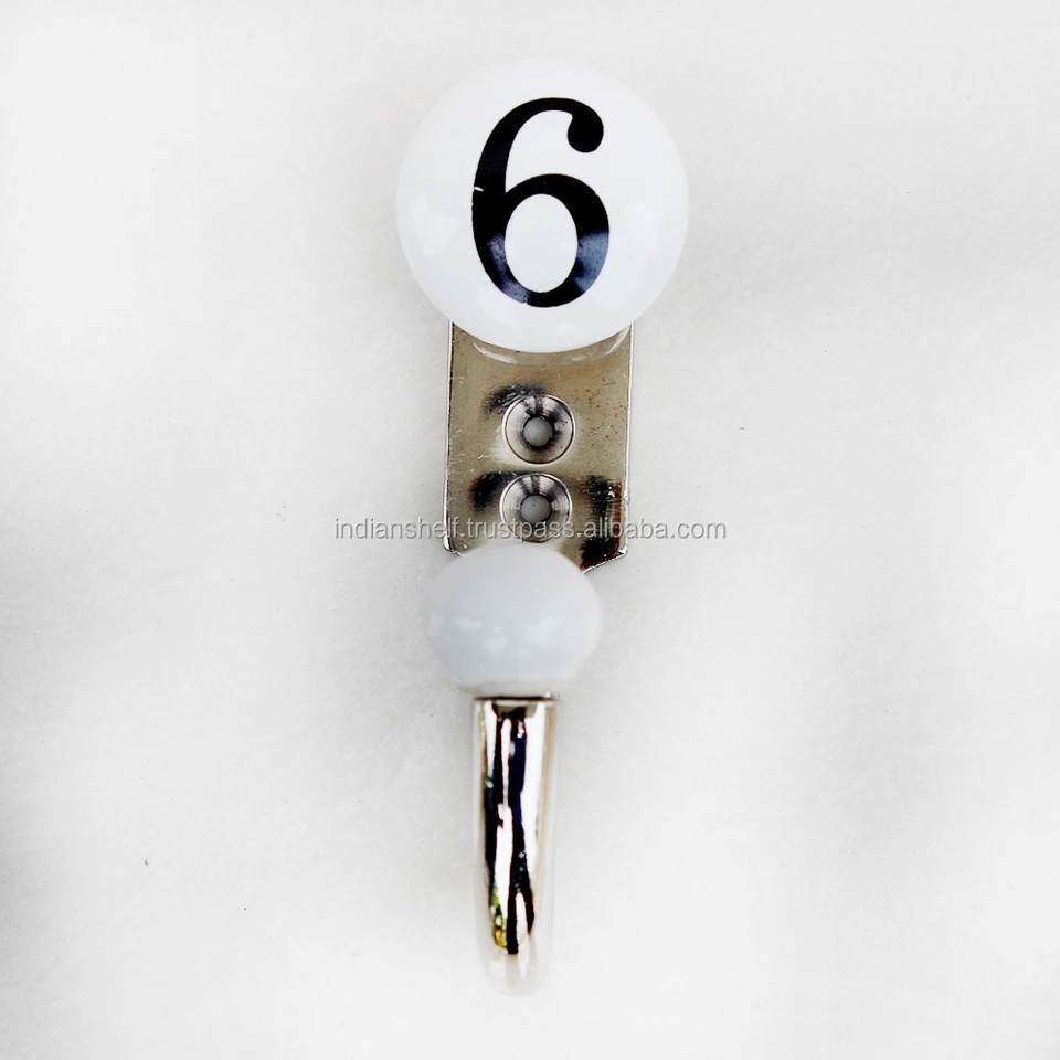 Handmade Premium Decorative White Ceramic Number 6 Coat Hooks for Wall Mounted Keys Hat Hangers Holders Wholesale On Cheap Price