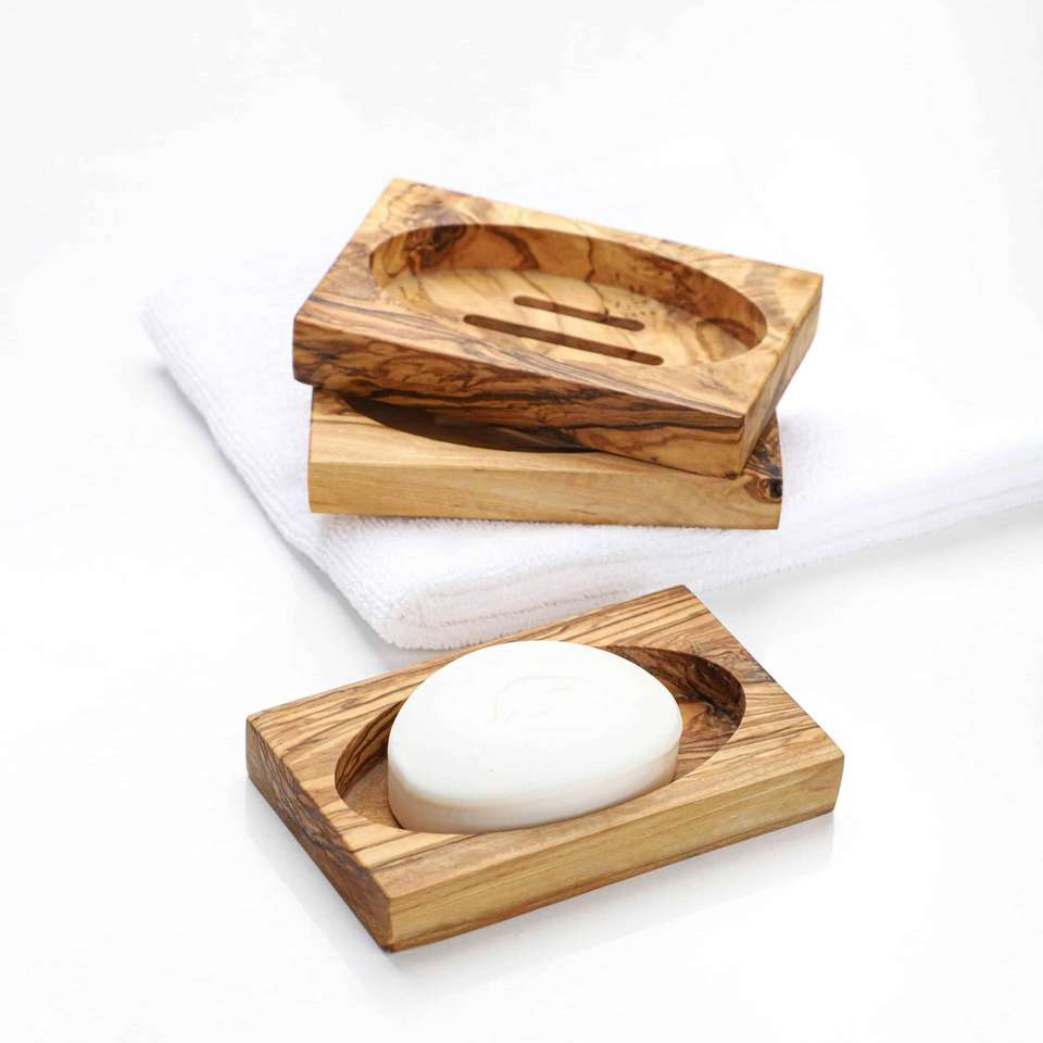 Handmade Premium Olive Wood Soap Tray with Drain Slots Wooden Soap Dish Holder with Drainage Feature for Bathroom & Kitchen Sink