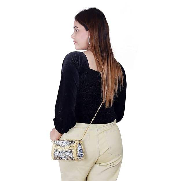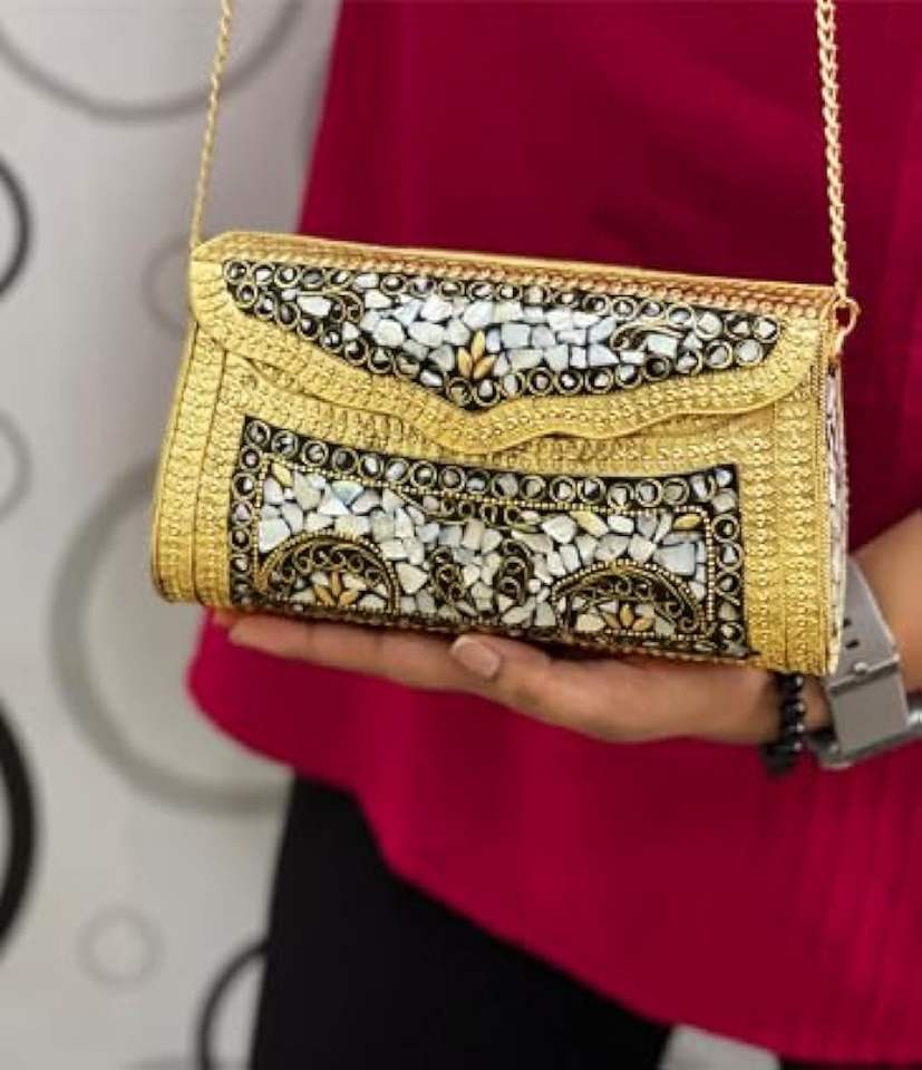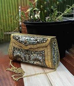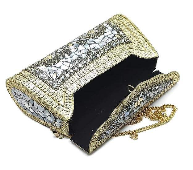 Handmade Premium Quality Gold Mosaic Clutch Bag Fashionable Jewel Embellishments M/S SHAAD HANDICRAFTS Elegant Wedding Party