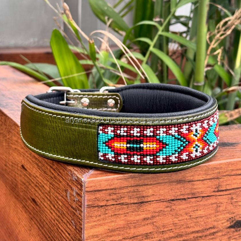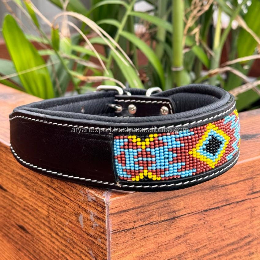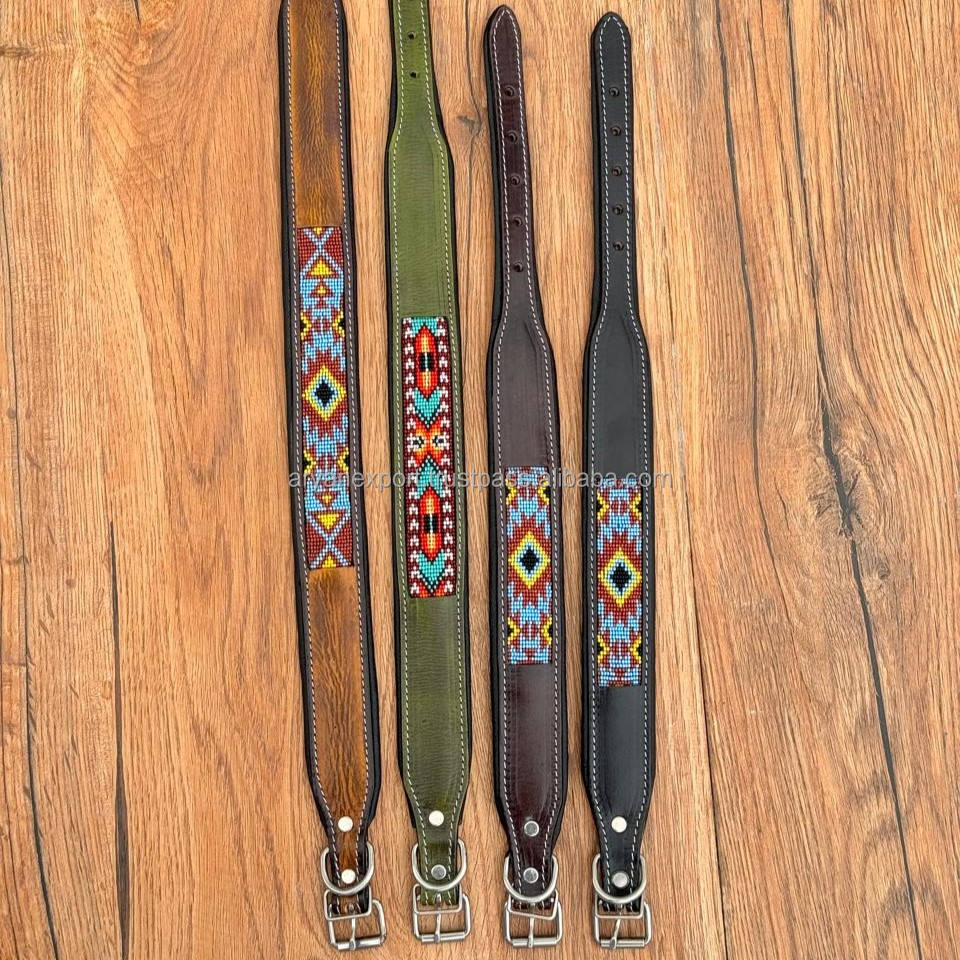 Product Name:Hand Tooled Leather Beaded Dog Collar