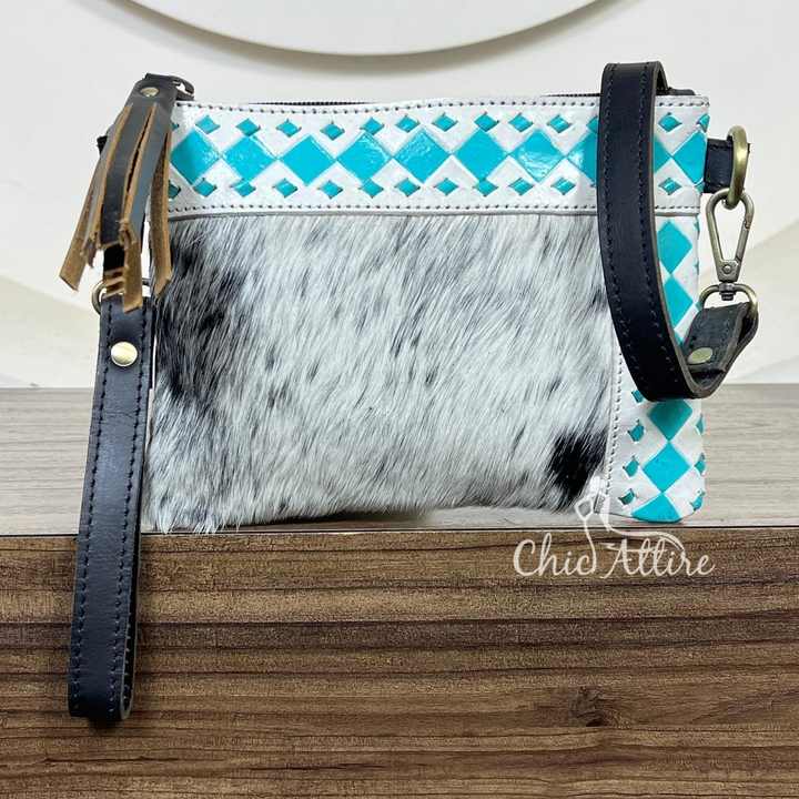 Product name:Hand Tooled Cowhide Checkered Fashionable Crossbody Bag