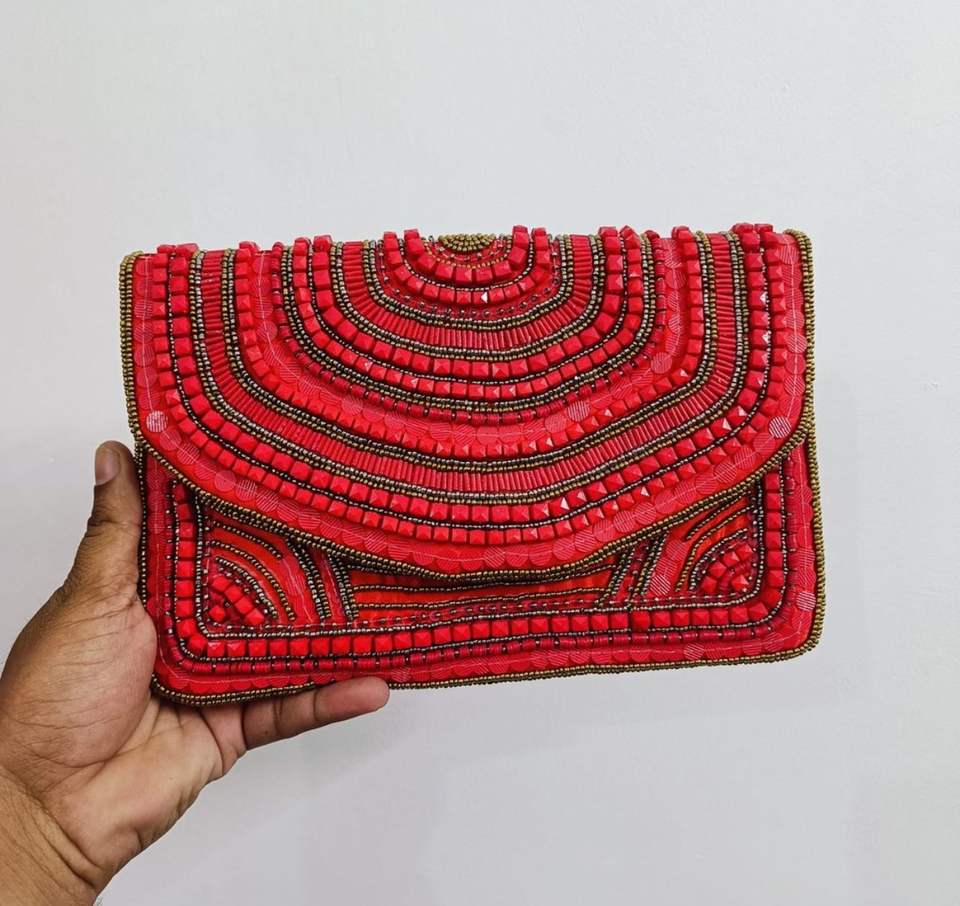 Handmade Premium Quality Vintage Style Women's Clutch Small Colorful Beaded Purse with Embroidery Decoration and Coin Pouch