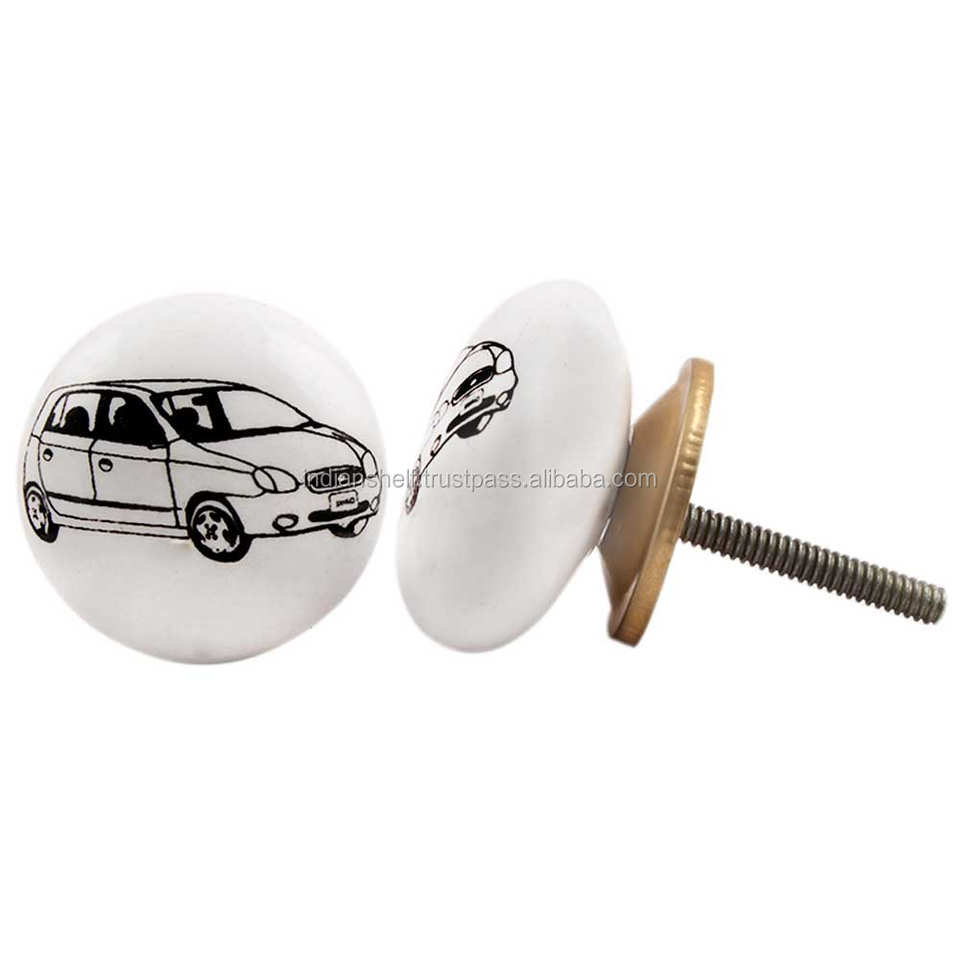 Handmade Premium Quality White Ceramic Car Flat Vehicle Drawer Knobs Dresser Cabinet Pulls Kitchen Cupboard Door Handles CVK-06