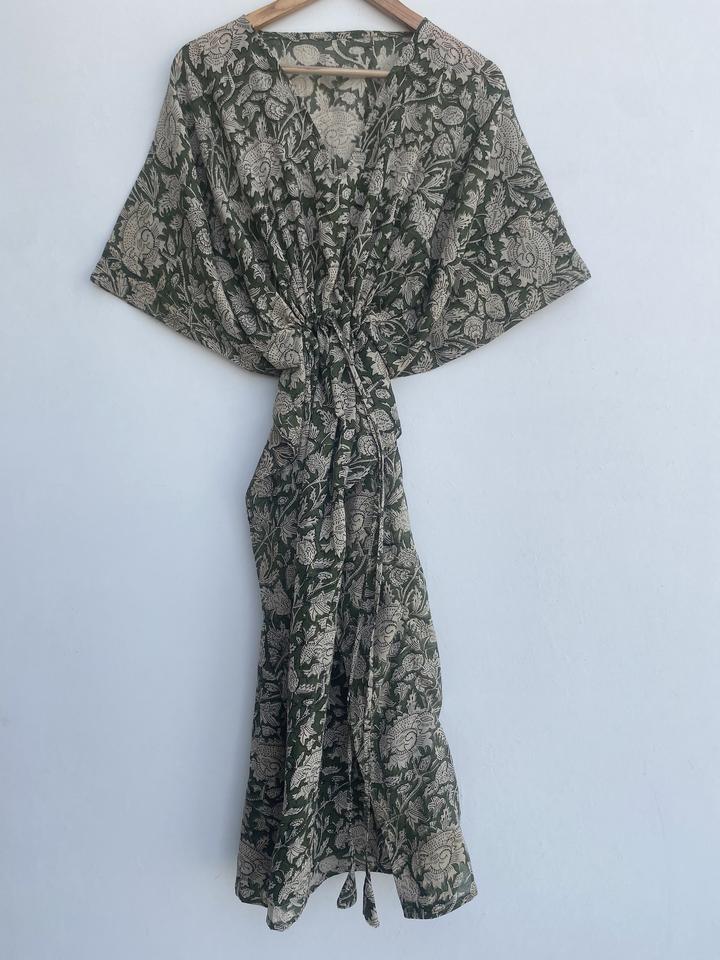 Product Name:Hand Block Print Kaftan Dress 100% Cotton Women's Summer Nightwear