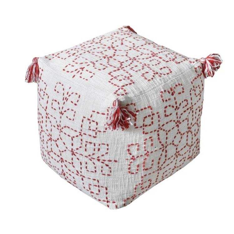 Handmade Printed Cotton Pouf Ottoman Best Selling Stylish Footrest Seat with Stool Cover for Living Room Decor