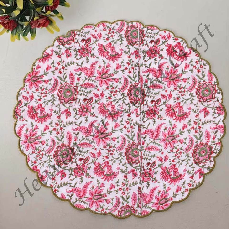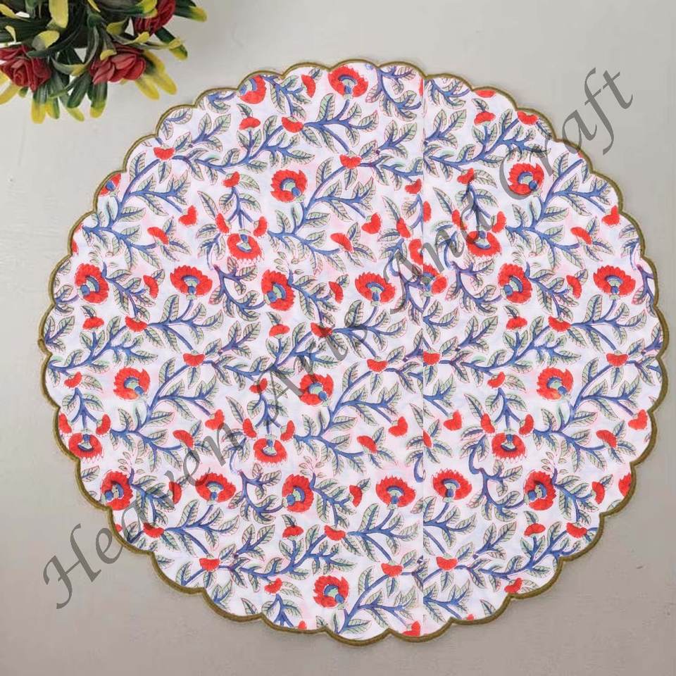 Handmade Printed Modern Round Table Napkin 100% Cotton Unique Design for Airplane, Hotels and Home Use EN042
