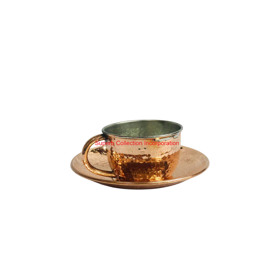 Handmade Pure Copper Hammered Tea & Coffee Cup And Saucer Set Traditional Drinkware & Serveware For Home Hotel Supply