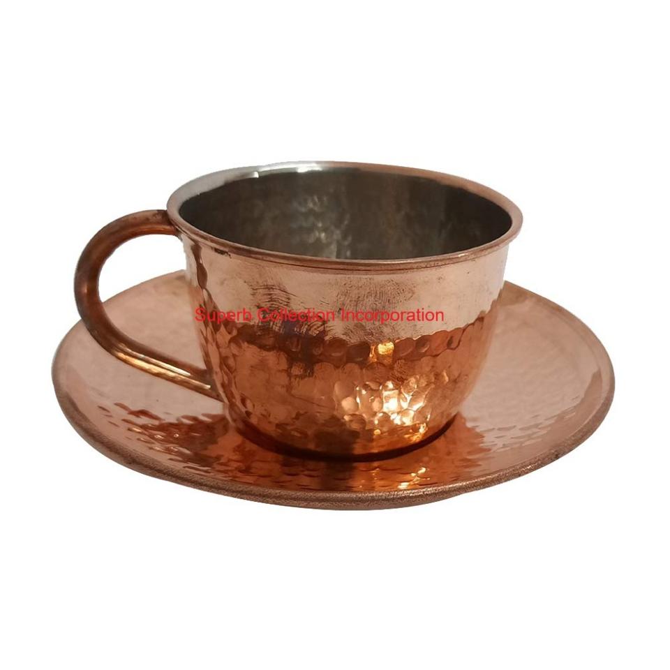 Handmade Pure Copper Tea Cup And Saucer Set With Hammered Design Vintage Indian Ethnic Drinkware For Home & Hotel Usage