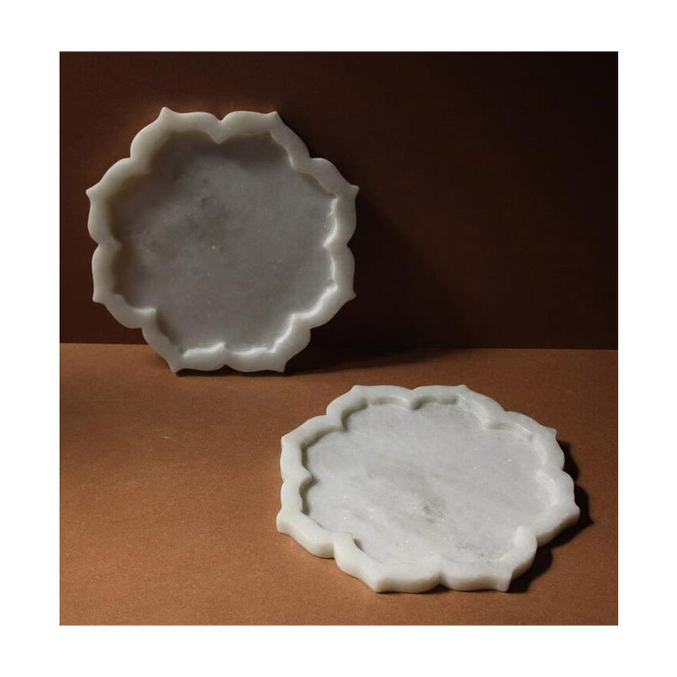 Handmade Pure Makrana Marble Flower Cutting Shape Plate