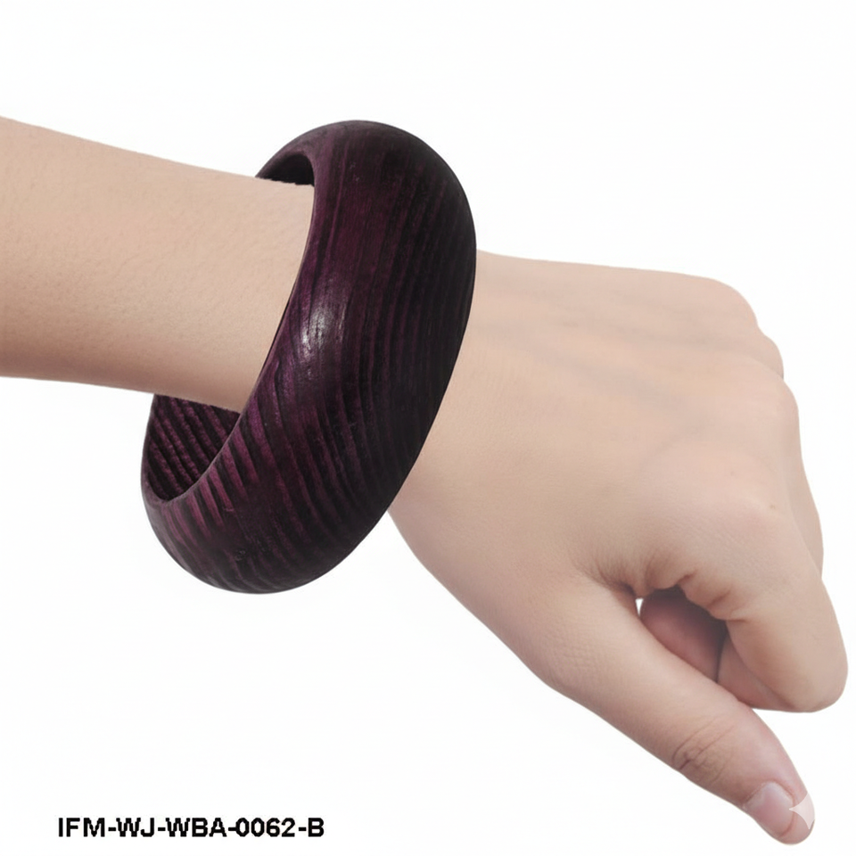 Handmade Purple Heart Wooden Bangle Natural Wood Bracelet, Boho Statement Jewelry, Hand-Carved Antique Style Wristband for Women
