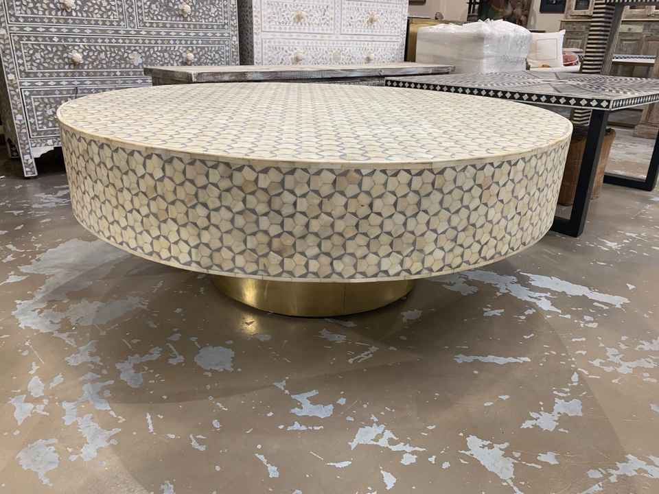 Handmade Quality Bone Inlay Wood Side Table Black White Floral Antique Design Living Room School Branded Decorative Use India