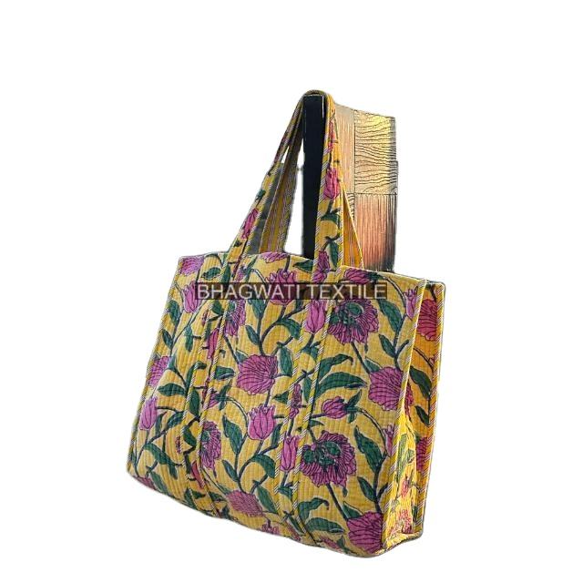 Handmade Quilted Bohemian Cotton Tote Bag for Women Large Ethnic Print Dual Shoulder Tassel with Zipper Closure Custom Logo
