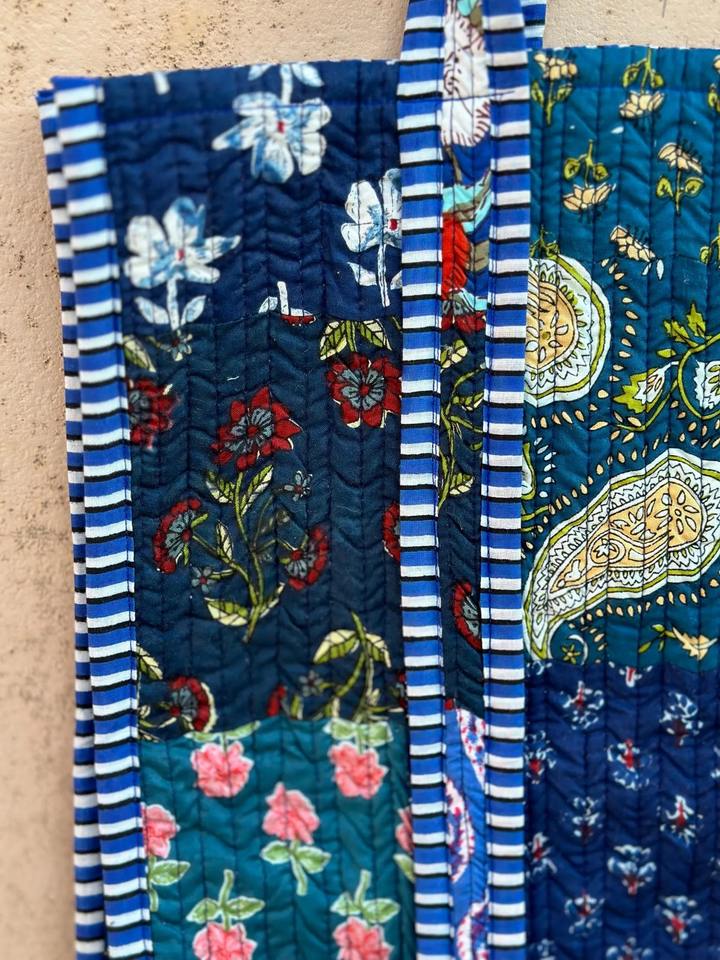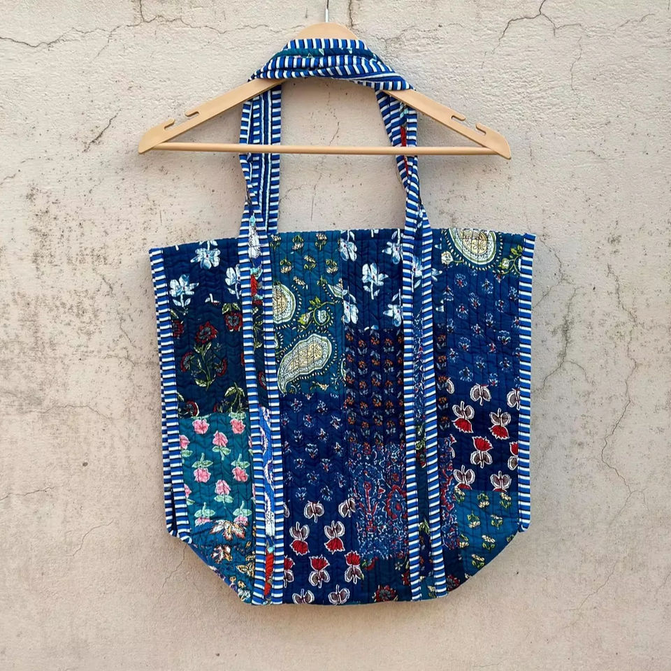 Handmade Quilted Cotton Bag Block Print Tote Bag for Women Boho Travel Bag Shoulder Purse Large Floral Weekender Bridesmaid Gift