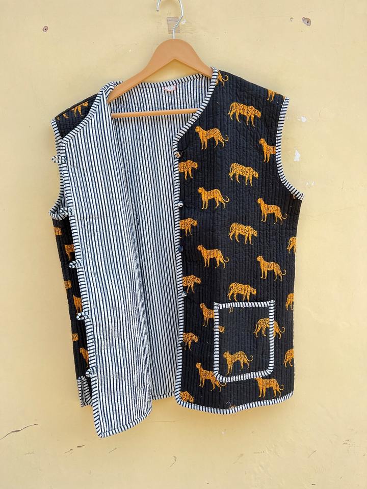 Product name:Cotton Quilted Patchwork Vest Coat
