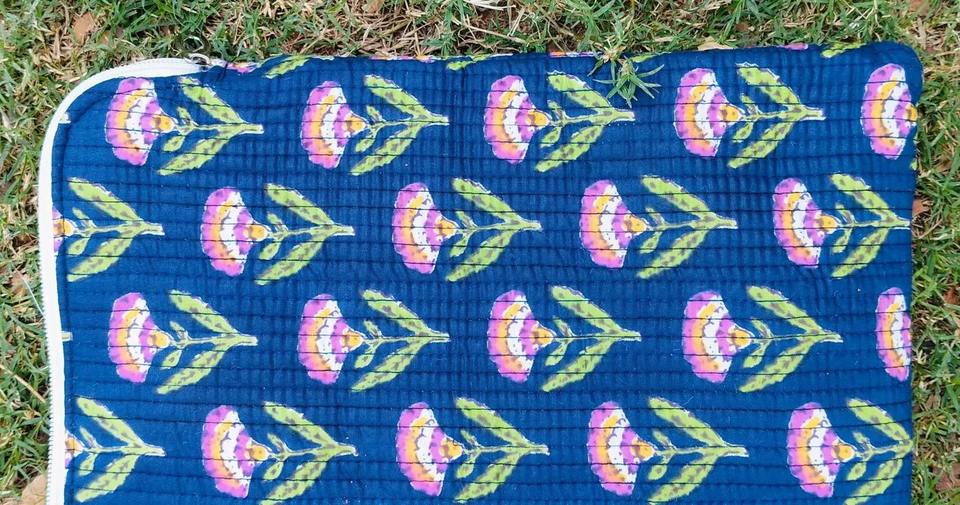 Handmade Quilted Cotton Laptop Sleeve: Blue Floral Print, Padded Protector