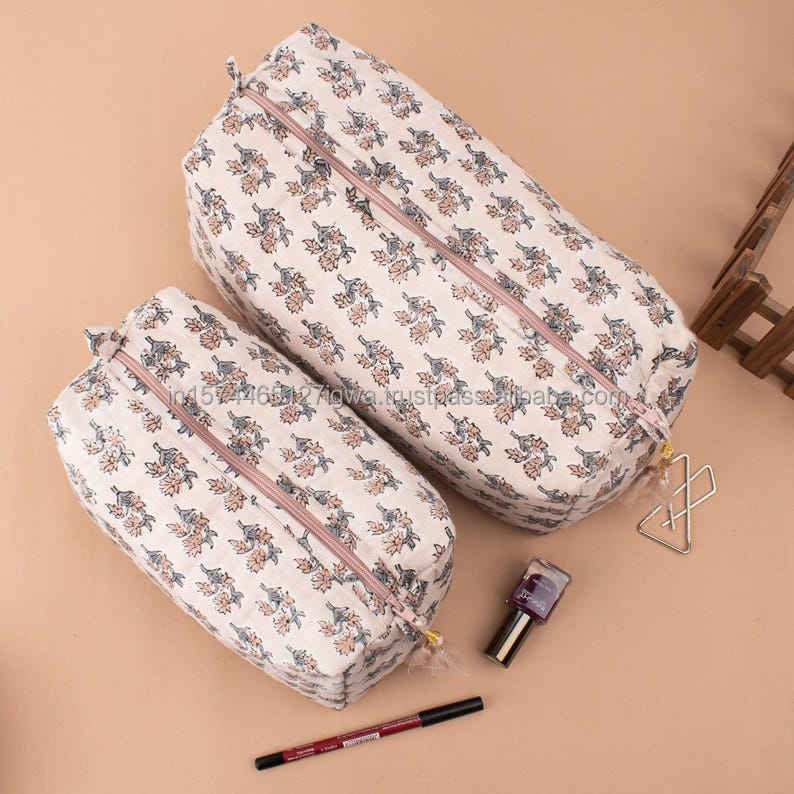 Hand Block Cotton Large Toiletry Bag And Makeup Bag