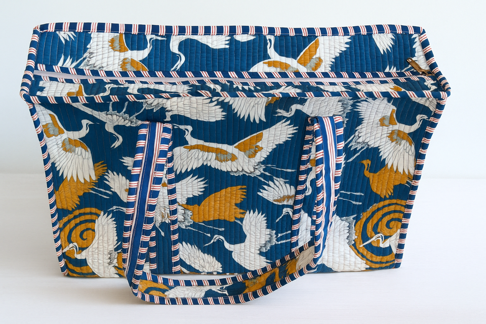Handmade Quilted Cotton Tote Bag Women Stylish Custom Vintage Printed Pattern Durable Washable Lightweight Canvas Zipper High