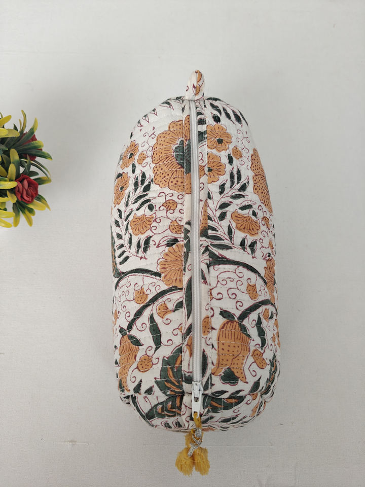 Handmade Quilted Cotton Travel Makeup Organizer Large Capacity Floral Block Printed Cosmet Pouch Zipper Lightweight Case
