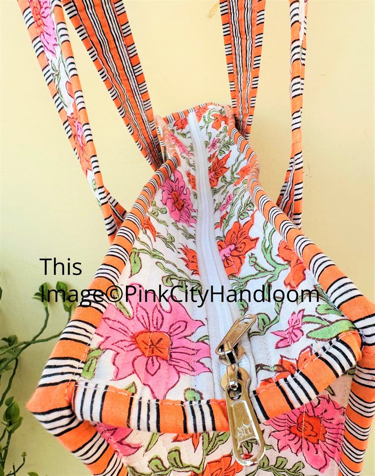 Handmade Quilted Shopping Tote Bag Women Quilted Shoulder Bags Hand Block Printed Cotton Large Beach Bags With Zipper
