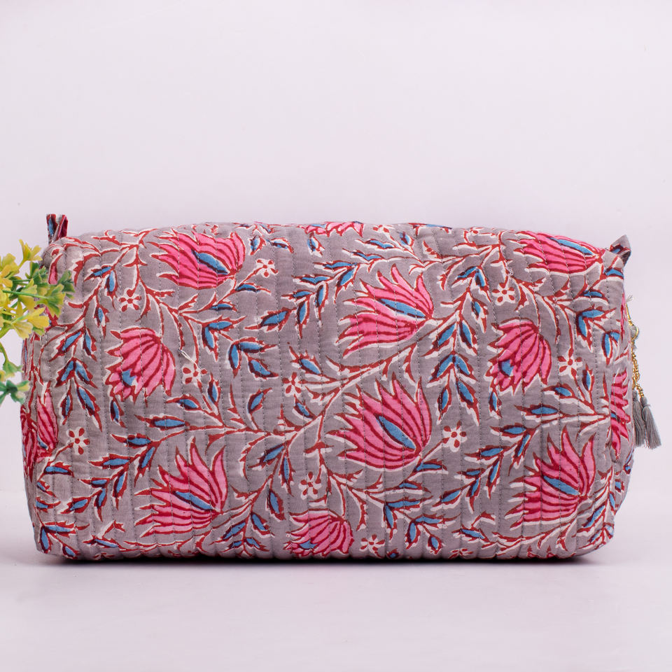 Handmade Eco-Friendly Large Quilted Summer Case Flower Makeup Bag Women Travel Cosmetic Portable Washable Printed Storage Bag