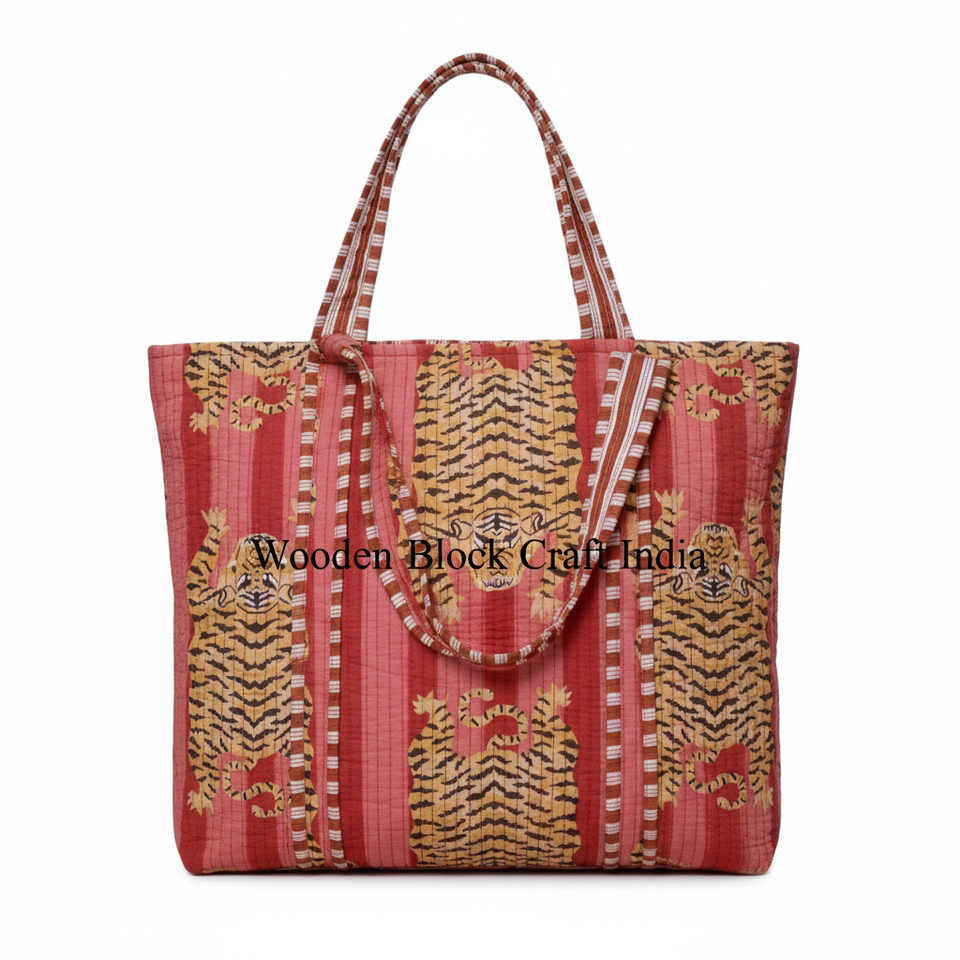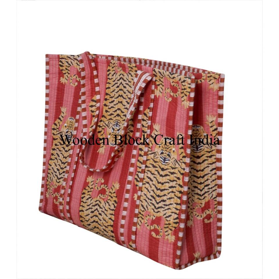 Handmade Quilted Tote Bag for Women Beautiful Cotton Market Bag for Shopping animal tiger Print Large Tote Bag Functional Tote