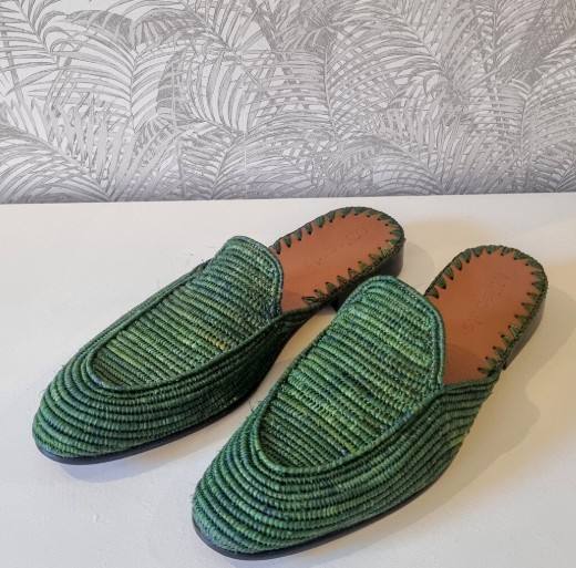 Handmade Raffia Men's Slides: Moroccan Leather Mules
