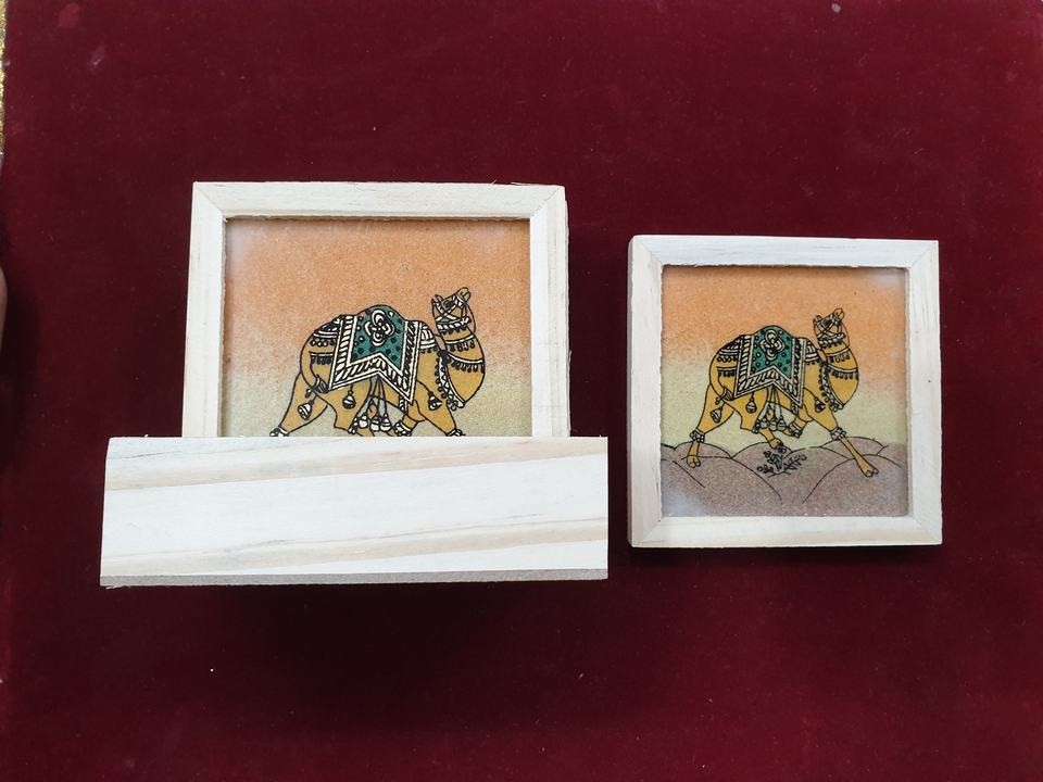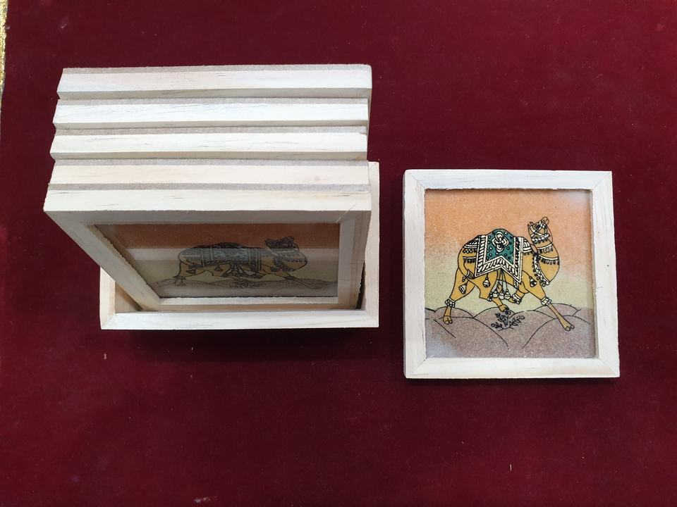 Handmade Rajasthani Camel Art Wooden Coaster Set with Stand | Stone Decorative MDF Tea Coasters for Home & Gift | Home Decor