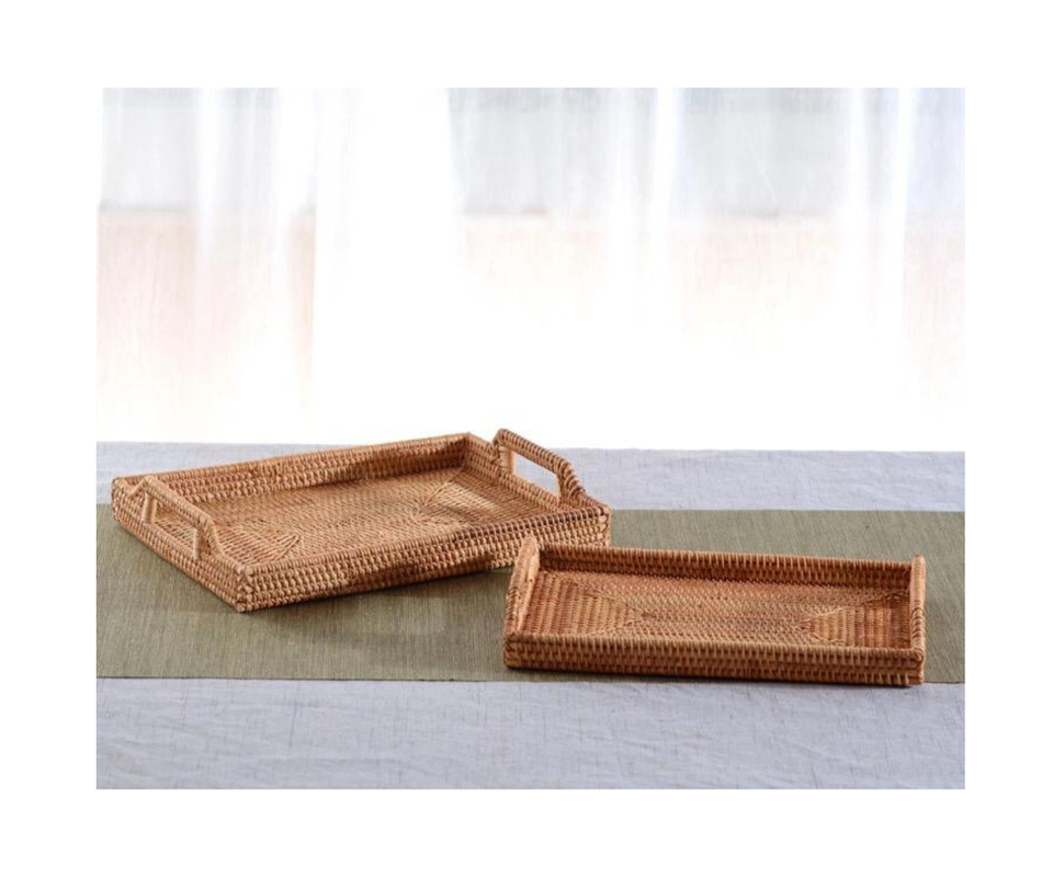 Handmade Rattan Desktop square Coffee Bread Tray Ins Style Light Luxury Organizer Cosmetics Storage Basket