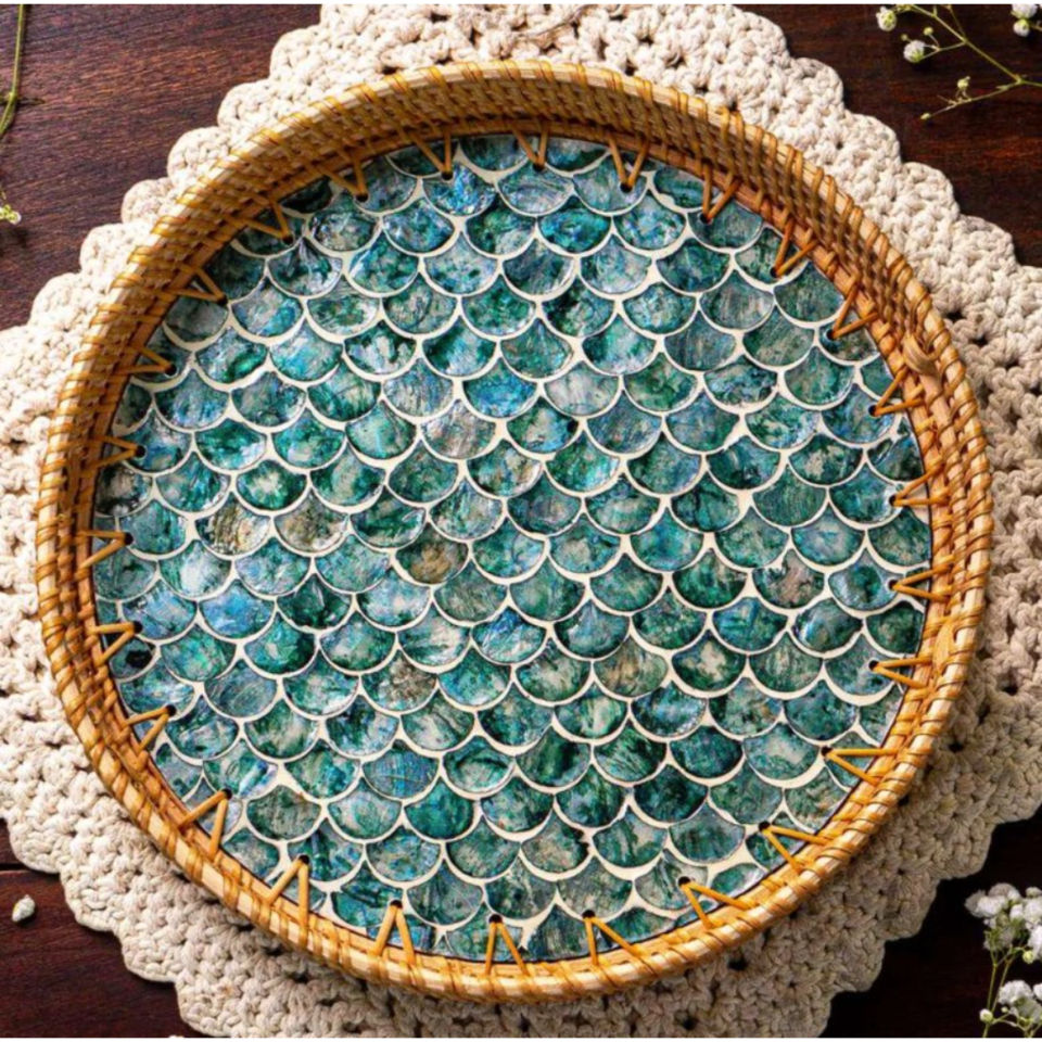 Material:Rattan/Woven/Mother Of Pearl/Bone Inlay