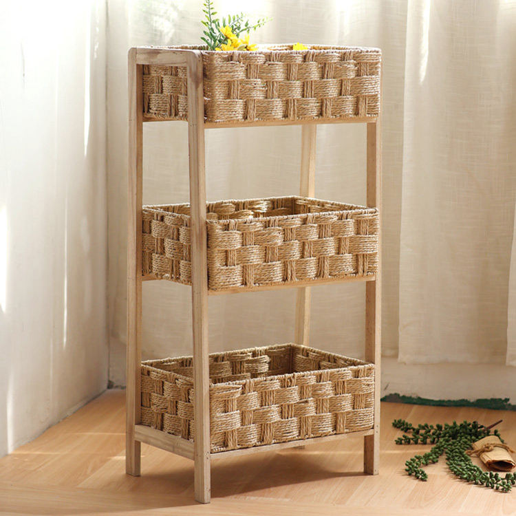 Handmade Rattan Storage Rack Children's Doll Storage Three-layer Snack Rack Home Hotel Decor Basket Bathroom Towel Toiletries