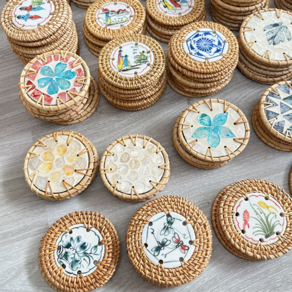 Handmade Rattan Tableware Set Stylish Water Hyacinth Bamboo Wicker Placemat Coaster Basket Famous Wedding for Home Use Vietnam