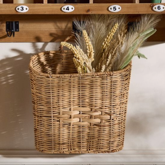 Handmade Rattan Wall Hanging Basket Natural Wicker Storage Organizer Decorative Rattan Basket for Living Room Bedroom Decor