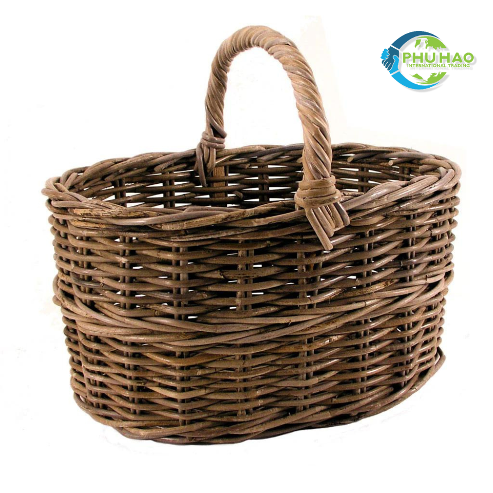 Handmade Rattan Woven Flower Basket VINTAGE COUNTRY BASKET Easter Egg Gift Picnic Basket for Kids with Handle