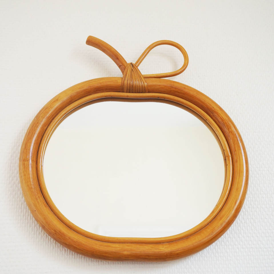 Handmade Rattan apple Mirror With Stem for Kid Room Decor
